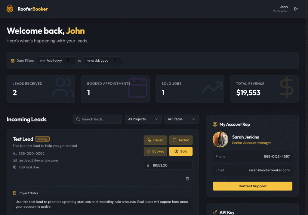 Contact your RooferBooker Rep if you have any questions or need to dispute a lead.